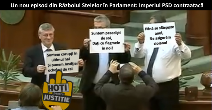În colţul din stânga, de partea opoziţiei care culmea, tot se opune, i-am avut pe stigmatizaţii de la PSD, pe complementarii de la PNL dar şi pe cei mai periculoşi dintre toţi, monştrii cu conţii media, mogulii. O corcitură diabolică cu mii de tentacule veninoase şi milioane de guri flămânde gata să sugă sângele POPORULUI, hărăzită în cel mai comic mod cu un cap de căpcăun infantil, Mircea Geoană. După cum se ştie, lighioana electorală nu a reuşit să câştige chiar dacă se scălda în două dintre cele mai mari bazine electorale.
